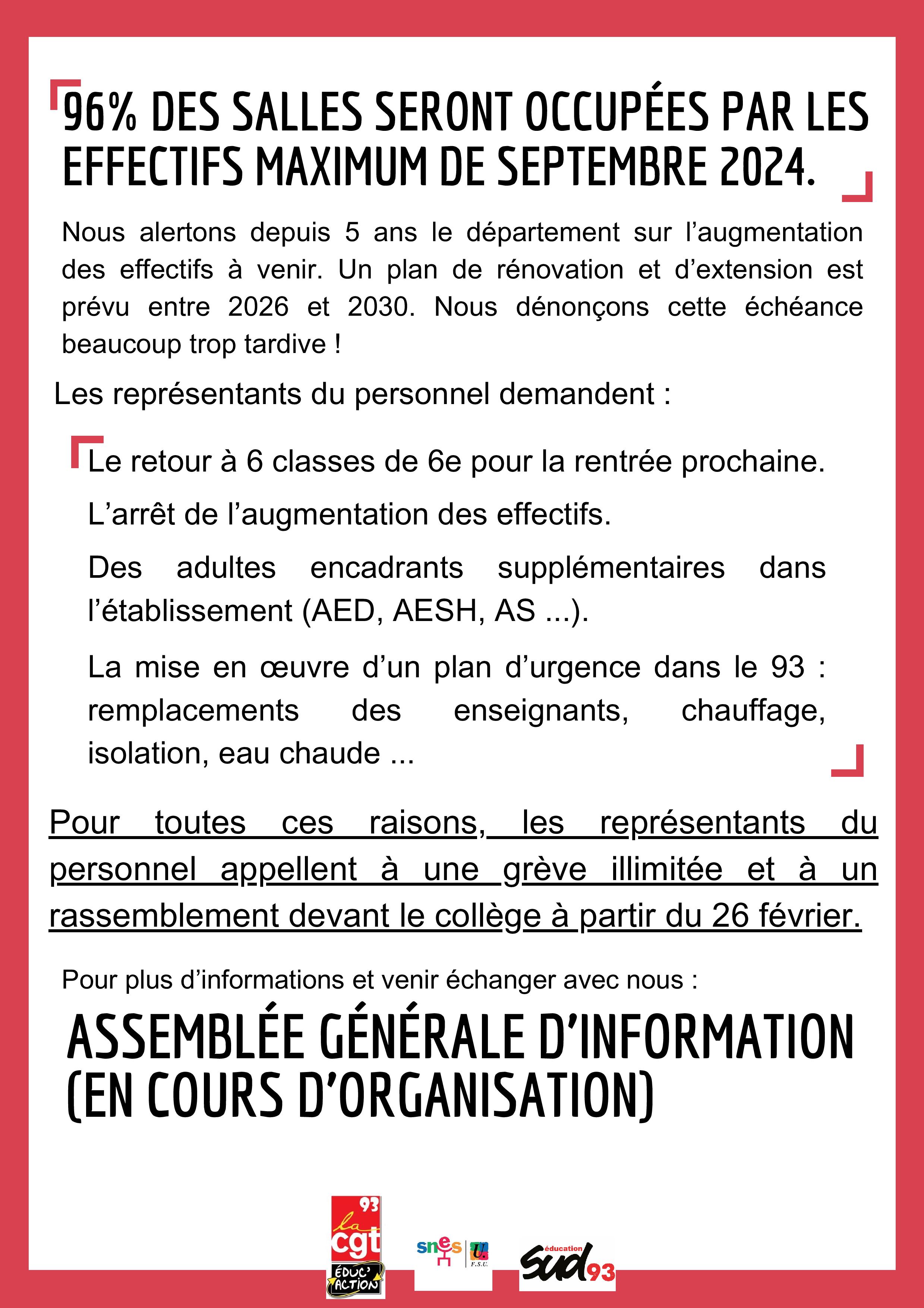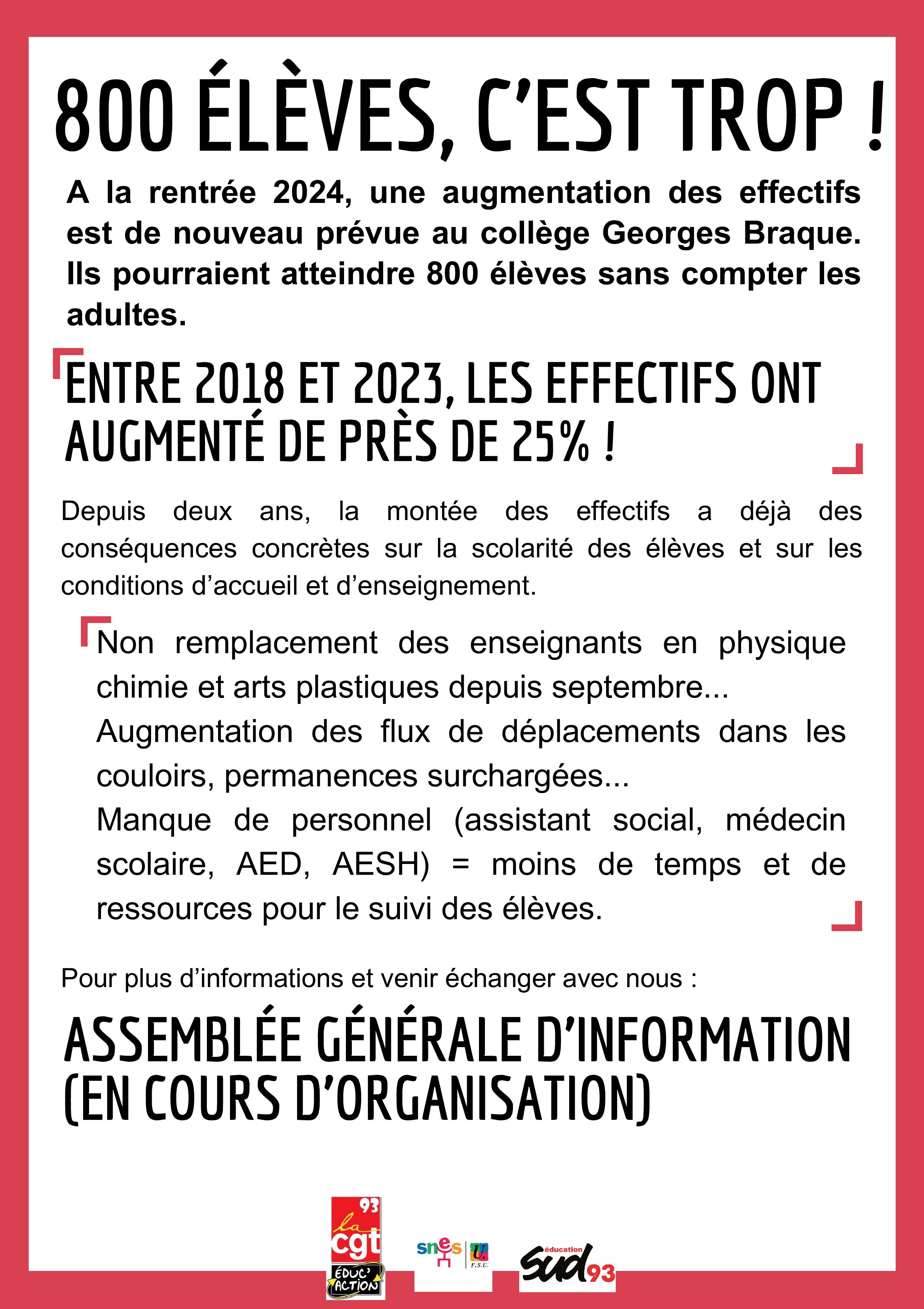 Vous êtes ici : Accueil actu des établissements Seine-Saint-Denis Appel à la grève illimitée au collège Georges Braque (Neuilly-sur-Marne) et rassemblement devant le collège le 26 février ! 9 février 2024 actu des établissements Appel à la grève illimitée au collège Georges Braque (Neuilly-sur-Marne) et rassemblement devant le collège le 26 février !