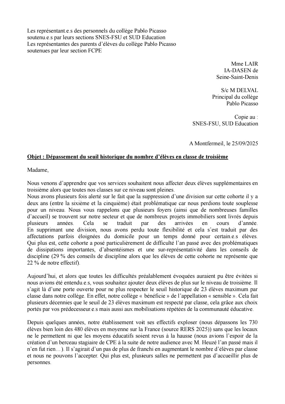 Vous êtes ici : Accueil actu des établissements Seine-Saint-Denis Au collège Pablo Picasso (Montfermeil), les seuils historiques sont dépassés 26 septembre 2025 actu des établissements Au collège Pablo Picasso (Montfermeil), les seuils historiques sont dépassés