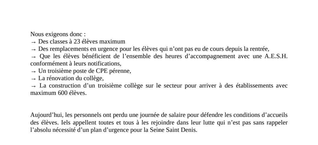 Vous êtes ici : Accueil actu des établissements Seine-Saint-Denis Communiqué de presse des personnels du collège Pablo Picasso (Montfermeil) 5 octobre 2025 actu des établissements Communiqué de presse des personnels du collège Pablo Picasso (Montfermeil) Communiqué de presse des personnels du 3 octobre 2025.