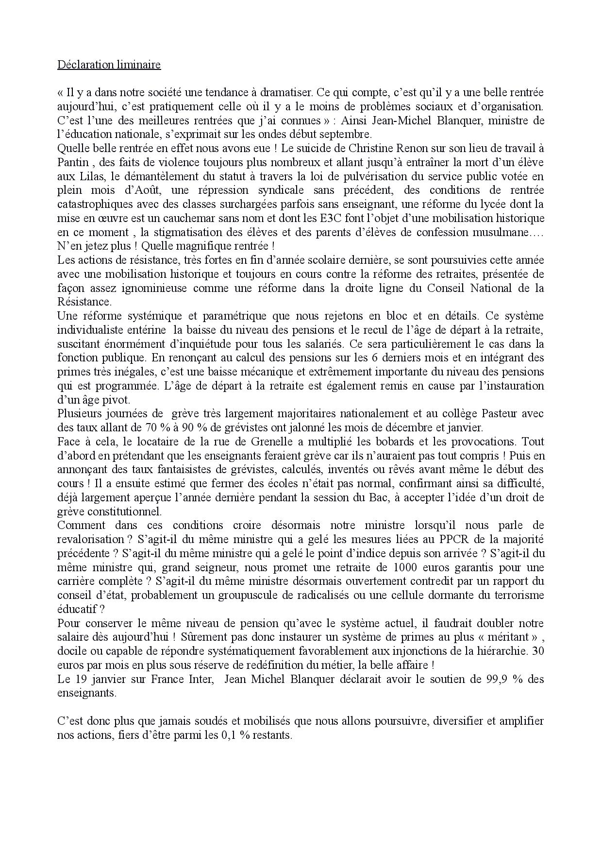 Vous êtes ici : Accueil actu des établissements Seine-Saint-Denis Déclaration liminaire des représentant.e.s des personnels d’enseignement et d’éducation du collège Louis Pasteur (Villemomble) et motion DHG. 7 février 2020 actu des établissements Déclaration liminaire des représentant.e.s des personnels d’enseignement et d’éducation du collège Louis Pasteur (Villemomble) et motion DHG.