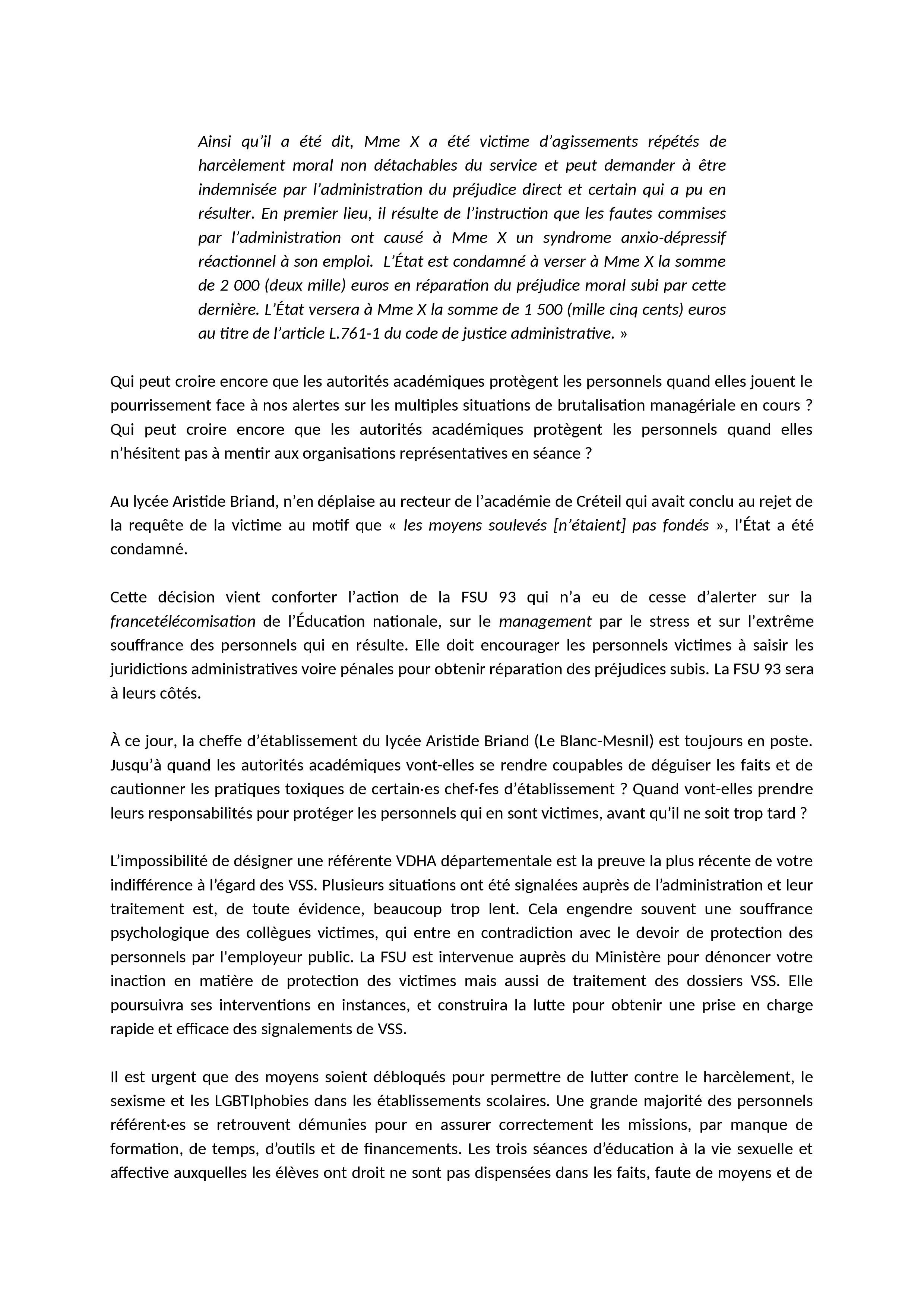 Vous êtes ici : Accueil actu des établissements Seine-Saint-Denis FS-SSCT départementale du 29 juin 2023 : déclaration liminaire, avis et compte-rendu de la FSU 93 30 juin 2023 actu des établissements FS-SSCT départementale du 29 juin 2023 : déclaration liminaire, avis et compte-rendu de la FSU 93