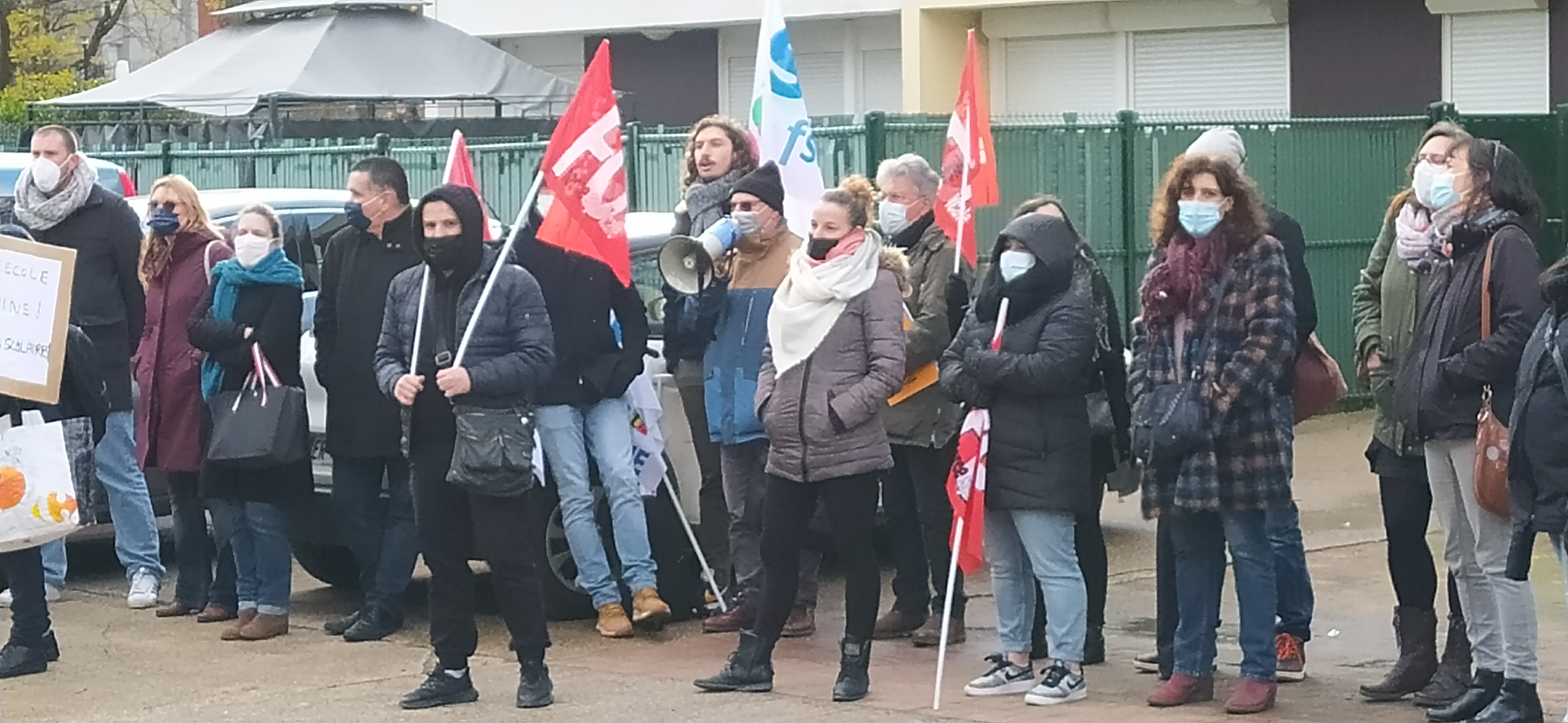 Jeudi 2 décembre, plus de 75 % des enseignant.e.s de la ville se sont mis en grève en signe de protestation. Ils dénoncent les conséquences de l’entrée des entreprises et des associations dans l’école publique, et affirment leur volonté de défendre une éducation qui doit rester nationale. Ils se sont réunis en assemblée générale, et soutenus par les parents d’élèves ont manifesté devant le point Service Public inauguré par le maire en présence de Mme La Préfète. Celle-ci s’est engagée à recevoir une délégation composée d’enseignants, de parents d’élèves et de représentants syndicaux la semaine prochaine. Le maire s’y est engagé également.