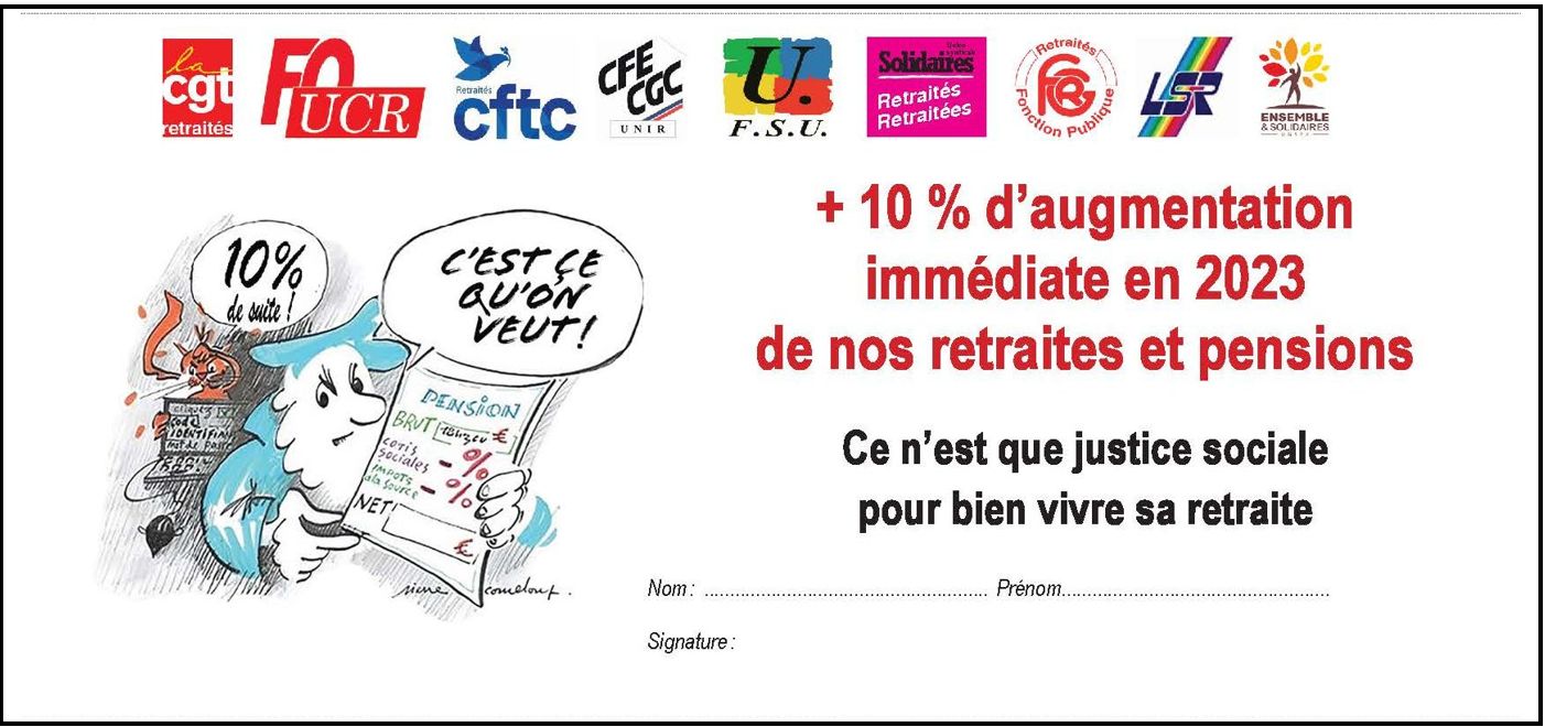 - 10% d’augmentation immédiate sur leurs retraites et pensions à valoir sur un rattrape du pouvoir d’achat ;