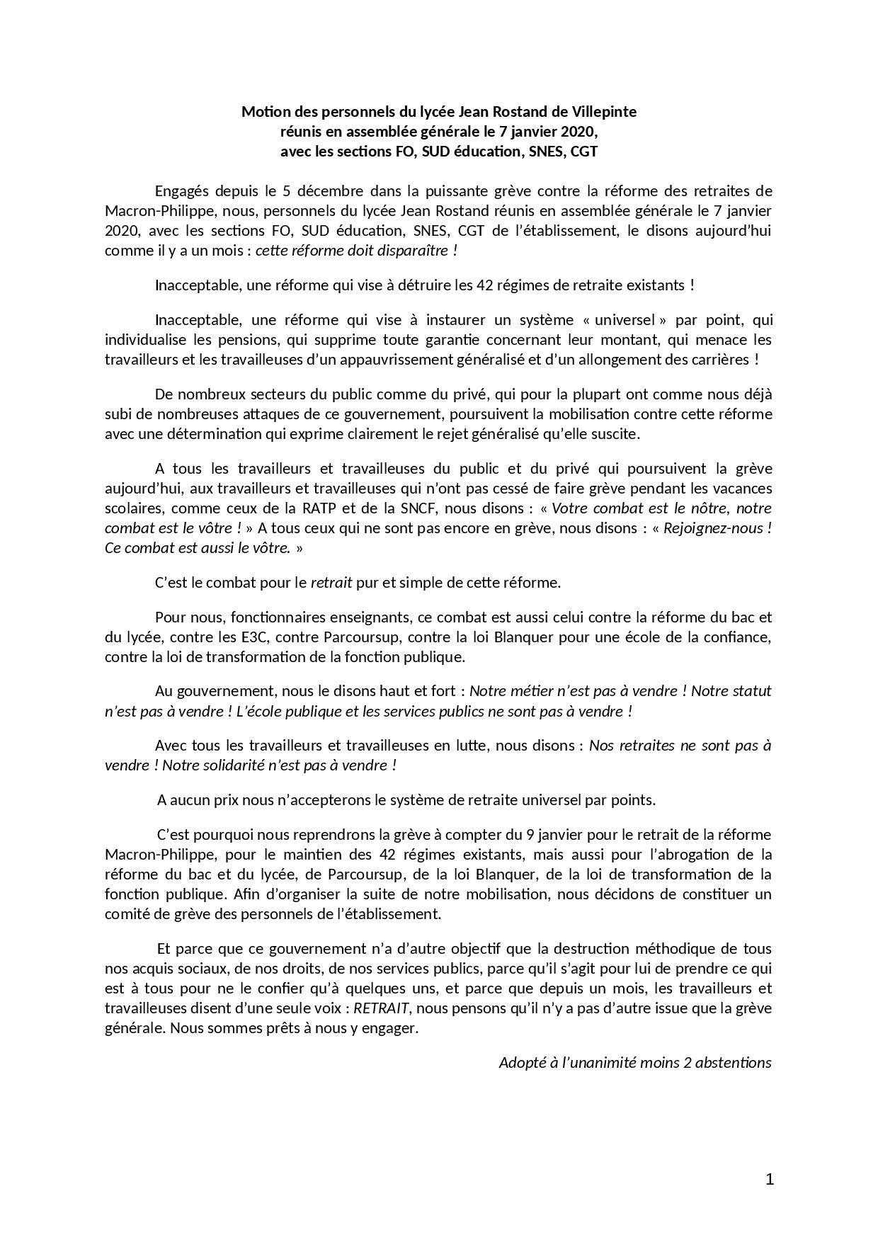 Vous êtes ici : Accueil actu des établissements Seine-Saint-Denis Motion LPO Jean Rostand (Villepinte) - 07.01.2020 10 janvier 2020 actu des établissements Motion LPO Jean Rostand (Villepinte) - 07.01.2020
