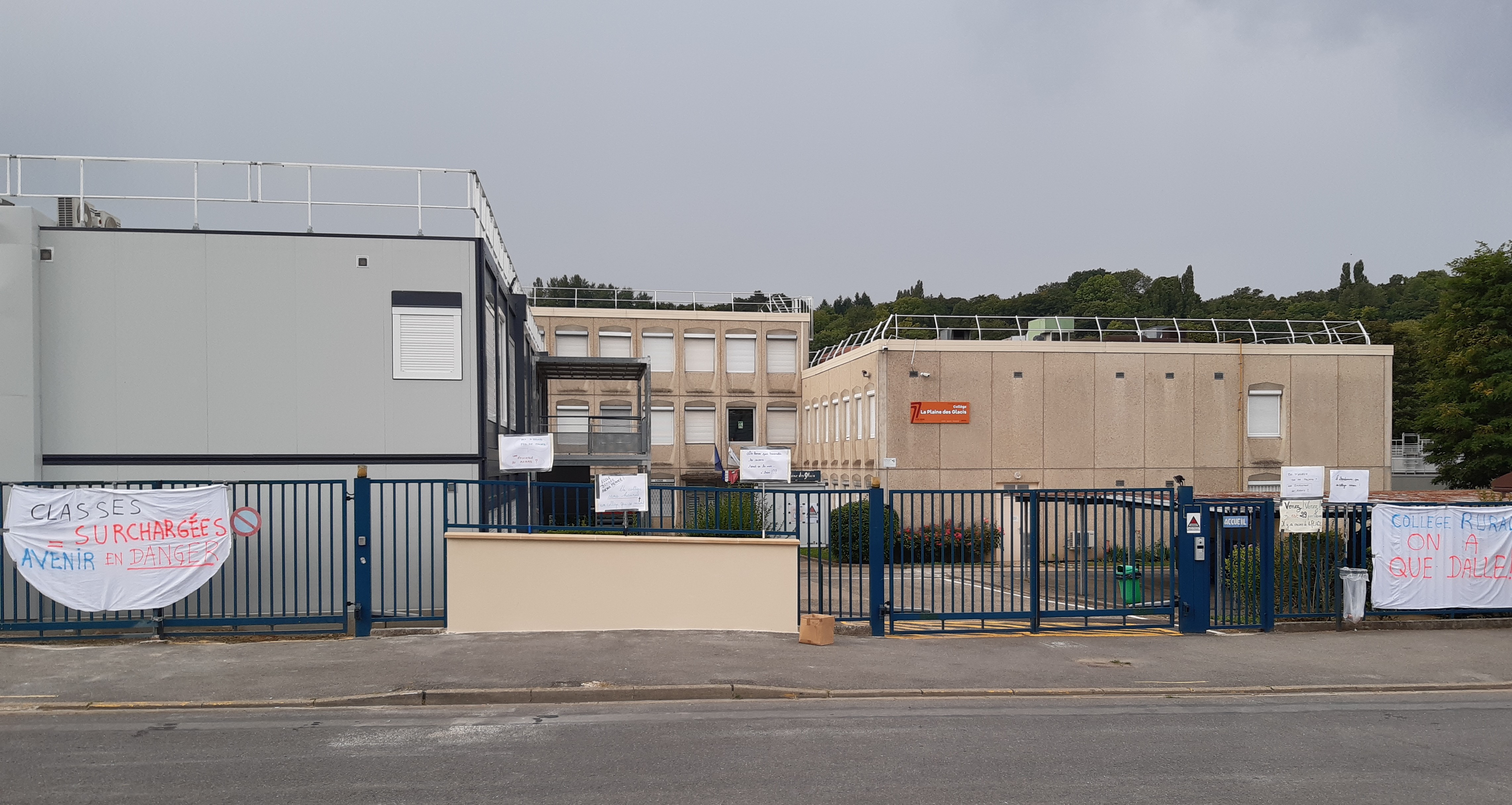 Le collège de la plaine des glacis à la Ferté sous Jouarre, qui voit ses effectifs exploser et où des algécos ont été installés dans l’attente de travaux d’agrandissement, réclame aussi des affectations d’agents supplémentaires pour prendre en charge ce surplus de salles. On leur a promis l’embauche d’un CUI, donc un poste non pérenne alors que la taille du bâtiment doit être augmentée.