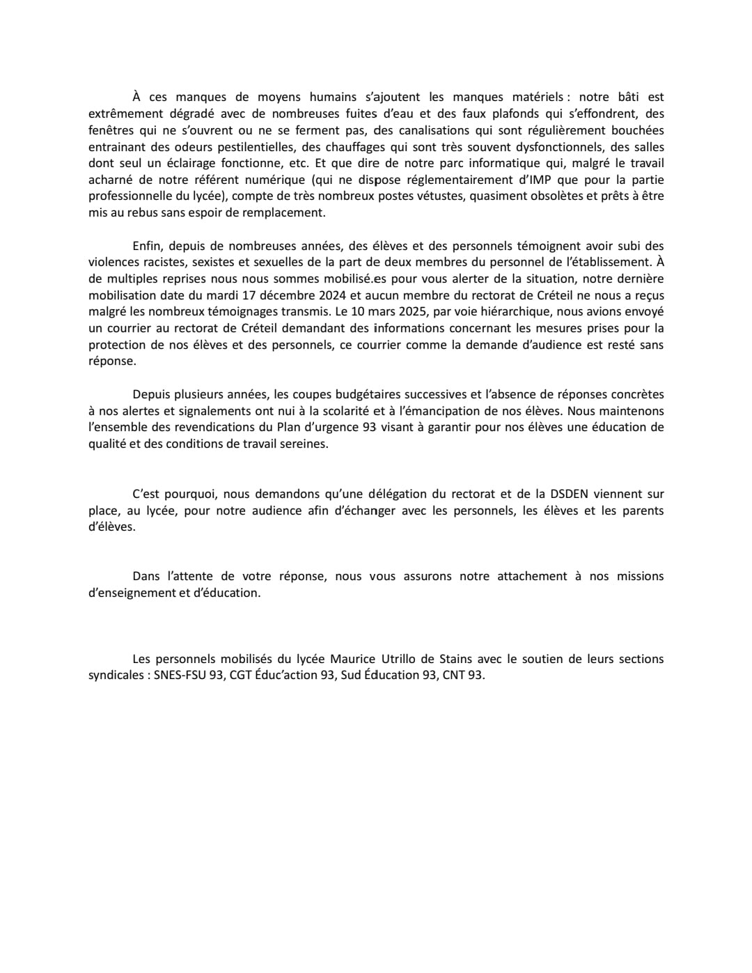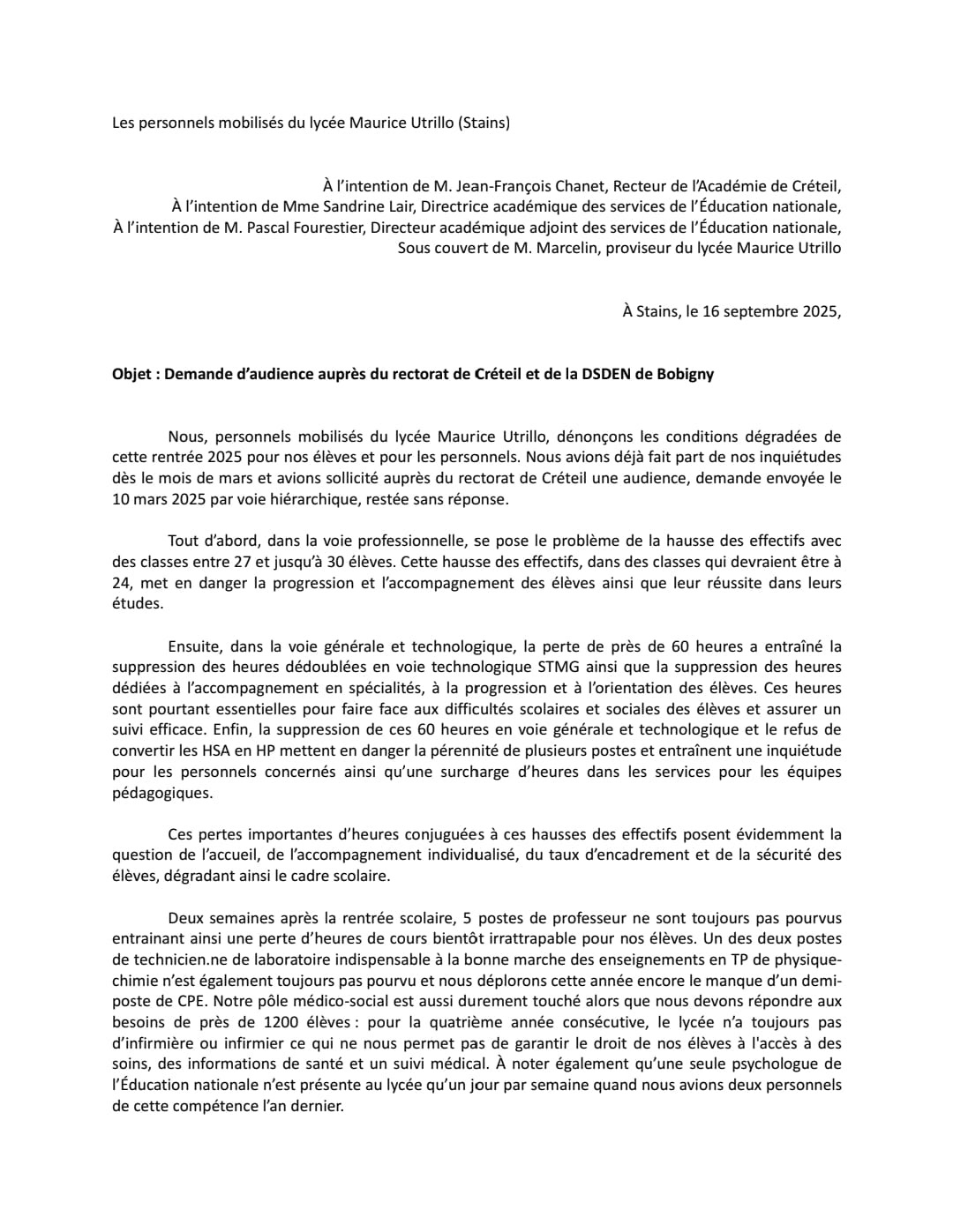 Vous êtes ici : Accueil actu des établissements Seine-Saint-Denis Situation de crise au lycée Utrillo (Stains) 19 septembre 2025 actu des établissements Situation de crise au lycée Utrillo (Stains)