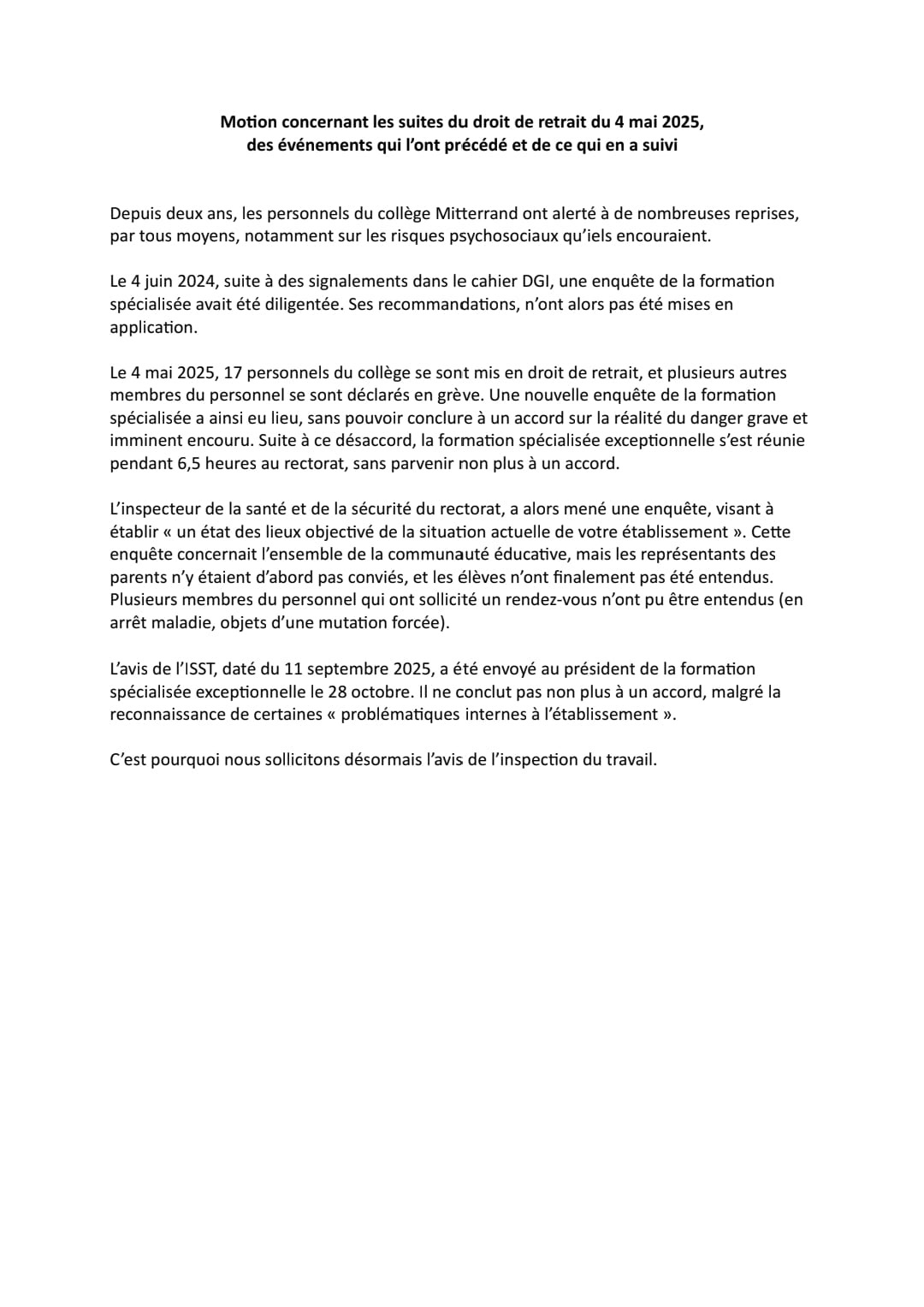 Vous êtes ici : Accueil actu des établissements Seine-Saint-Denis Un étrange rapport de l’ISST au collège Francois Mitterrand (Noisy le Grand) 7 novembre 2025 actu des établissements Un étrange rapport de l’ISST au collège Francois Mitterrand (Noisy le Grand)